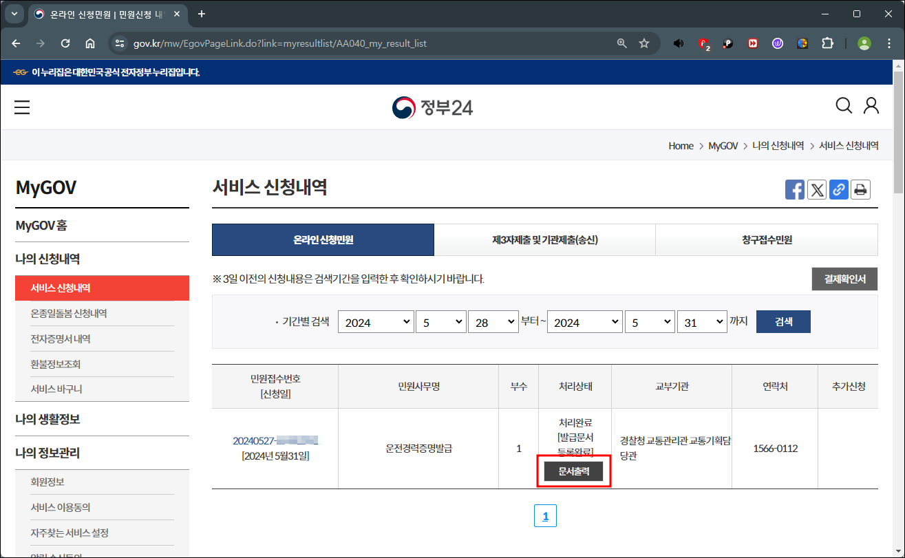 운전경력증명서 인터넷발급 (정부24)