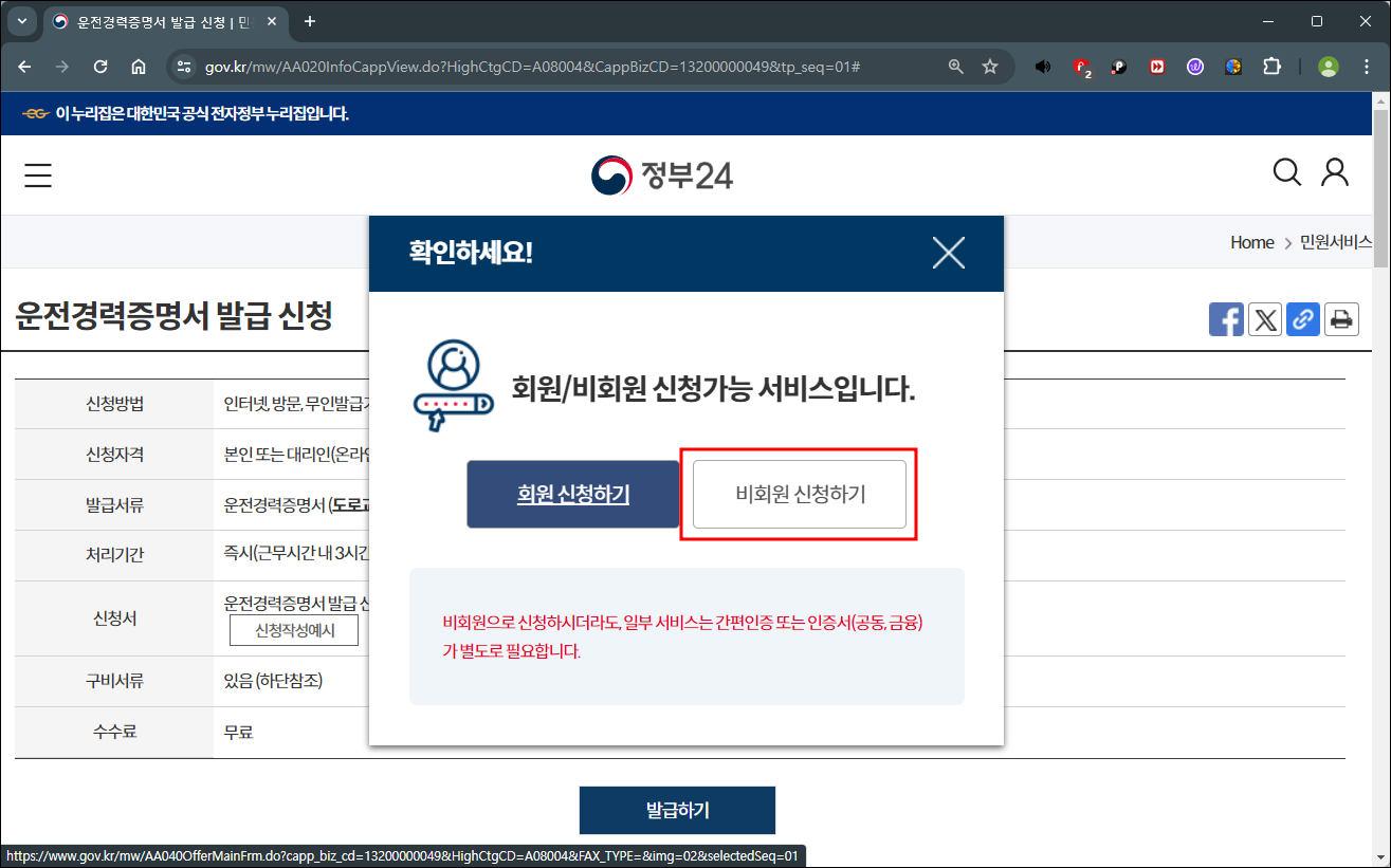 5. 정부24 회원이나 비회원 모두신청이 가능합니다.